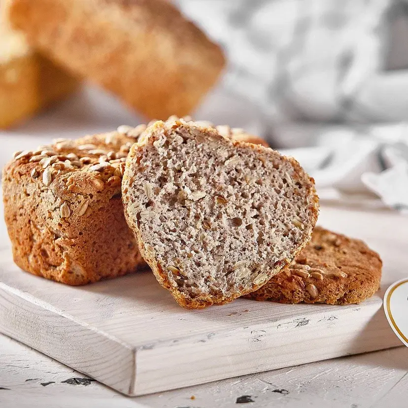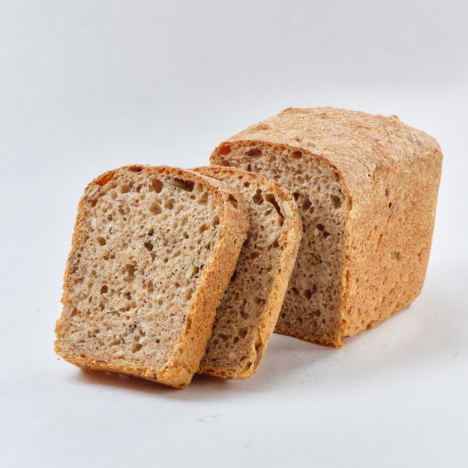 С любовью к вашему здоровью! Мука свежего помола, семечка льна, тыквы и подсолнечника. Благодаря обилию грубых волокон этот хлеб - умный помощник вашему кишечнику. Способствует очищению и правильной работе ЖКТ. Прекрасно дополнит, как горячие блюда, так и легкие салаты, станет отличной основой бутербродам. 350 г